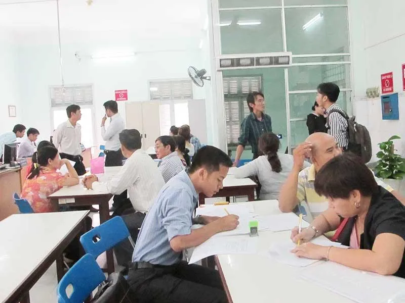Người dân đang làm thủ tục giao dịch tại một tổ chức hành nghề công chứng. Ảnh: KP
