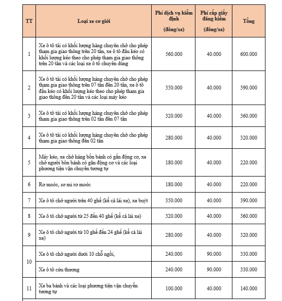Hiện nay, khi đưa xe đi đăng kiểm, chủ phương tiện sẽ phải trả hai loại phí bao gồm: Phí dịch vụ kiểm định và lệ phí cấp giấy chứng nhận kiểm định an toàn kỹ thuật và bảo vệ môi trường của xe cơ giới.
