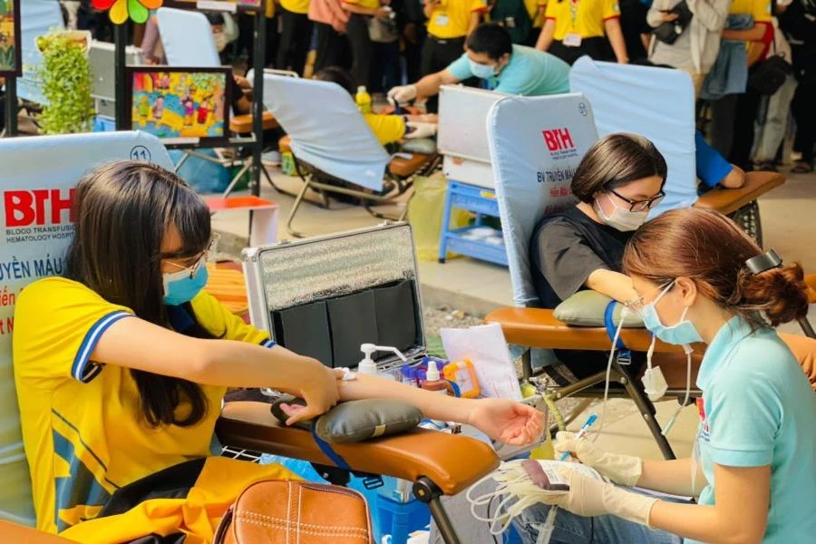 Một buổi hiến máu của Bệnh viện Truyền máu Huyết học TP.HCM. Ảnh: MINH CHÂU