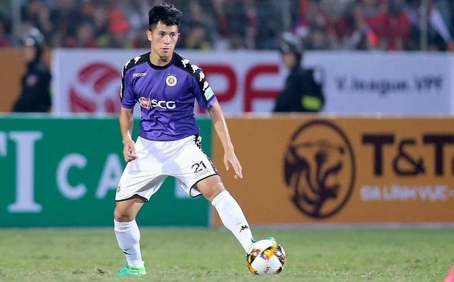 Văn Toàn trong pha đối đầu với Văn Hậu