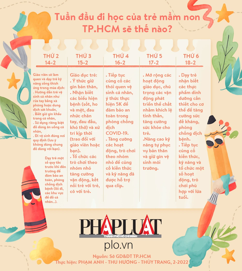 (PLO)- TP.HCM hiện có 1.360 trường mầm non, 1.800 nhóm trẻ, lớp mẫu giáo tư thục với hơn 355.000 trẻ theo học. Bắt đầu từ 14-2 TP sẽ cho trẻ mầm non đi học trực tiếp trở lại.