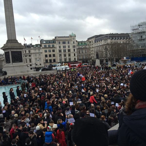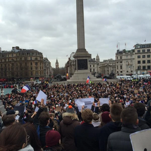 Tại Luân Đôn, thủ đô nước Anh, người tuần hành đang hô vang quốc ca Pháp.