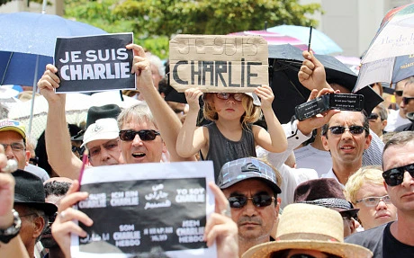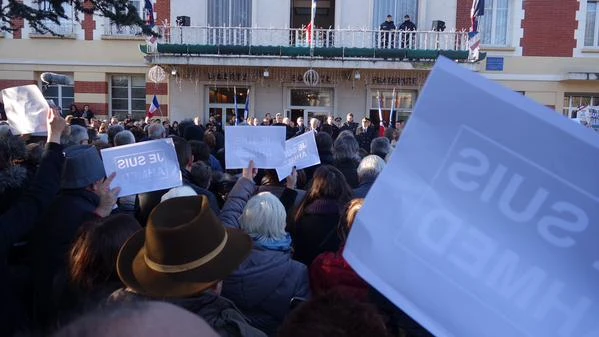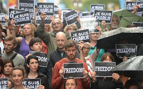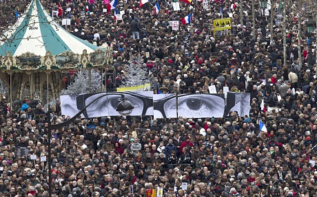 Trên quảng trường tràn ngập bảng khẩu hiệu cầm tay: "Tôi là Charlie","Tự do, Bình đẳng, Vẽ, Viết".