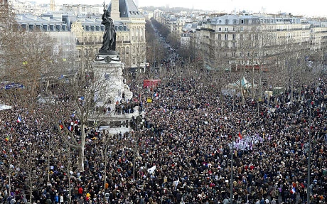 Người tuần hành đã đỗ về đến Quảng trường Quốc gia của Paris. Cuộc tuần hành lớn nhất trong hơn nửa thế kỷ nay tại Pháp đã dần kết thúc và thành công tốt đẹp.
