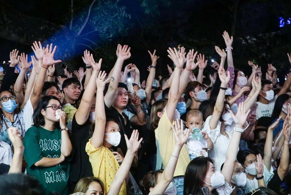 Tối ngày 24-9, hàng ngàn người dân đã tới phố Hàng Khay, nằm trong khuôn viên phố đi bộ bờ hồ Hoàn Kiếm (Hà Nội) để dự đêm nhạc Góc ban công có tên gọi Cảm ơn của ca sĩ Tuấn Hưng.