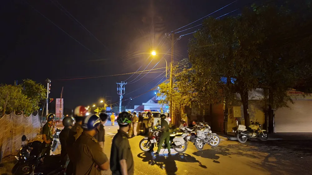 Lực lượng chức năng phong tỏa hiện trường, vây bắt Tuấn "khỉ" khuya 13-2. Ảnh: HT