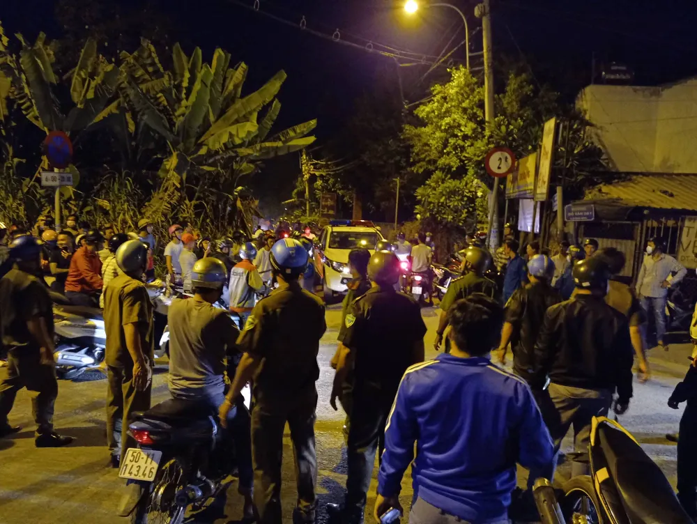 Trong đêm, khu vực này có rất đông cảnh sát, dân quân phong tỏa để vây bắt Tuấn "khỉ".