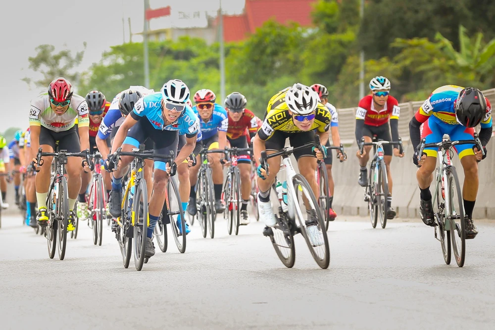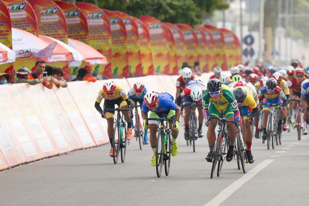 Tay đua của đội Hà Nội, Quàng Văn Cường (14) rút thắng sprint 1.