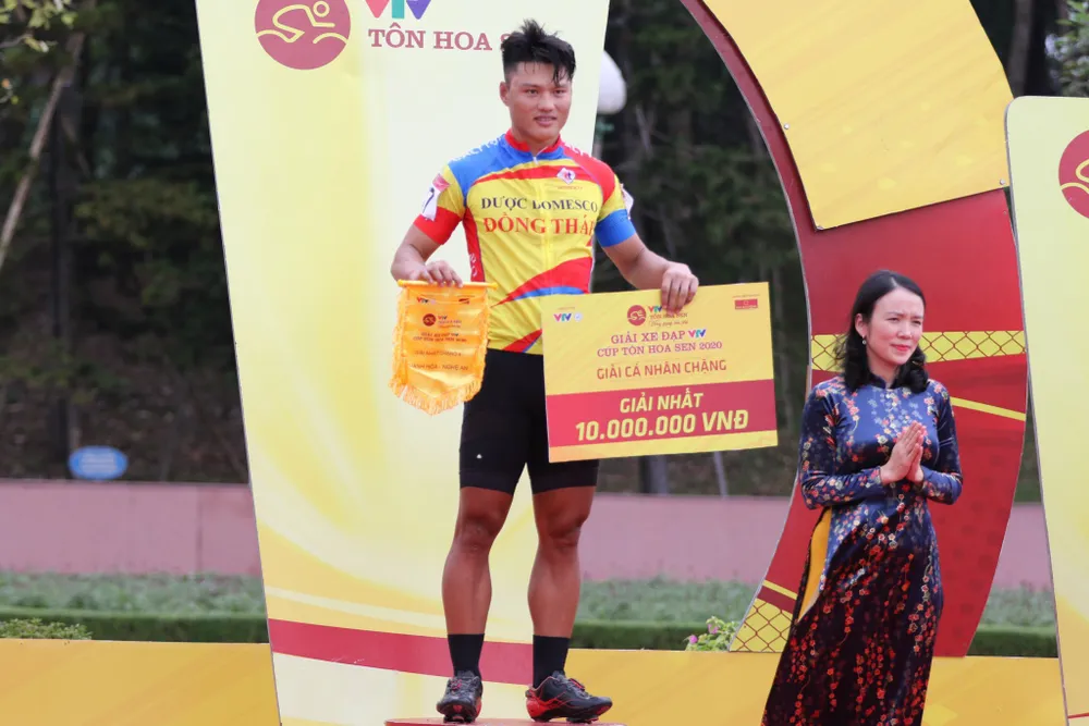 Tuấn Kiệt nhận danh hiệu chiến thắng chặng 4. ẢNH: ANH TẤN