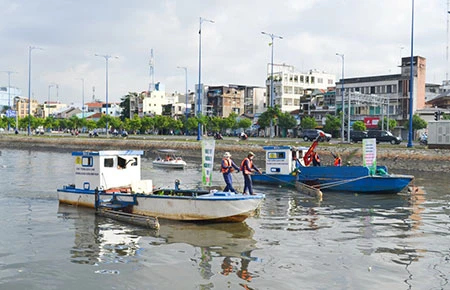Hoạt động vớt rác trên sông vào ngày Môi trường thế giới do Sở TN&MT TP.HCM tổ chức năm 2013. Ảnh: NGỌC CHÂU