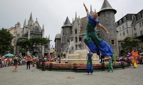 Hoạt náo trên các tuyến phố tại Bà Nà Hills.