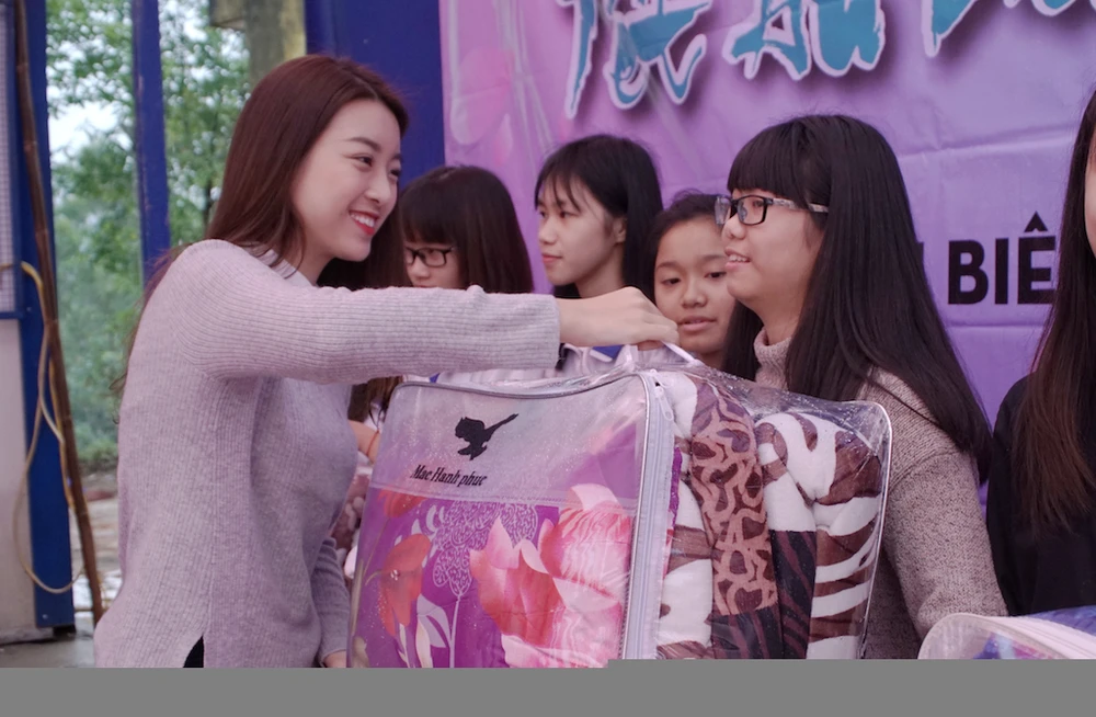 Hoa hậu Đỗ Mỹ Linh đã mang Tết an bình đến cho các em tại Điện Biên. (Ảnh do ban tổ chức cung cấp)