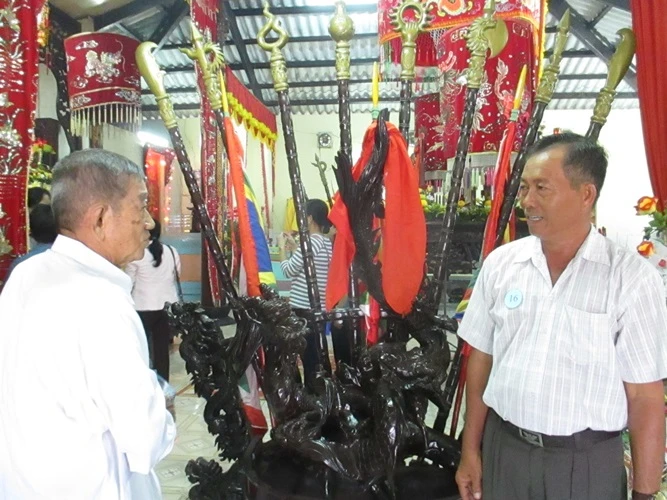 Ông Trần Việt Dũng, ngư dân giỏi đánh bắt xa bờ (phải) đến lễ nghinh ông cầu cho ngư dân đi biển bình an
