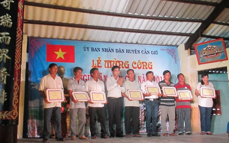 Tại lễ mừng công, 10 ngư dân vượt khó bám biển, ngư dân làm ăn giỏi đã được huyện Cần Giờ khen thưởng dịp này.
