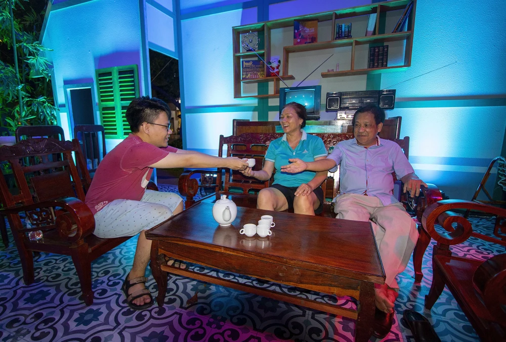Em Trung Kiên (quận Bình Thạnh, TP.HCM) cùng ba mẹ hòa vào không gian của ngôi nhà kiến trúc cổ.