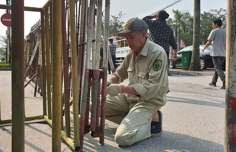 Các hàng rào được buộc chặt kiên cố nhằm tránh xảy ra tình trang chen lấn xô đẩy xảy ra trong đêm khai ấn đền Trần.
