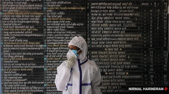 Một nhân viên y tế ở Ấn Độ. Ảnh: NIRMAL HARINDRAN