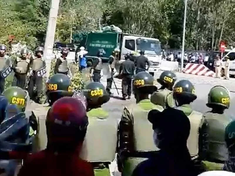 Đến chiều 8-7, lực lượng chức năng vẫn còn tập trung, đảm bảo an ninh trật tự cũng như đảm bảo thông tuyến cho xe vào bãi rác Khánh Sơn.