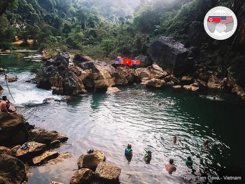 Để chào đón hội nghị thượng đỉnh, trên Fanpage của Công ty du lịch Oxalis - Chua Me Đất (Quảng Bình), đơn vị tổ chức tour khám phá hang Sơn Đoòng, đã đăng rất nhiều hình ảnh những du khách Việt Nam và du khách nước ngoài cùng cầm trên tay quốc kỳ của ba nước Việt Nam - Mỹ - Triều Tiên giơ lên cạnh nhau trong một loạt các hang động đẹp nhất của Việt Nam tại Quảng Bình.