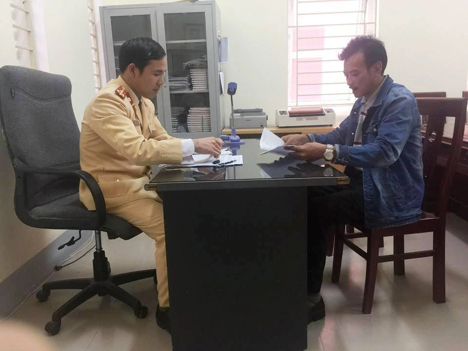 CSGT Công an Nghệ An làm việc với tài xế Toàn.