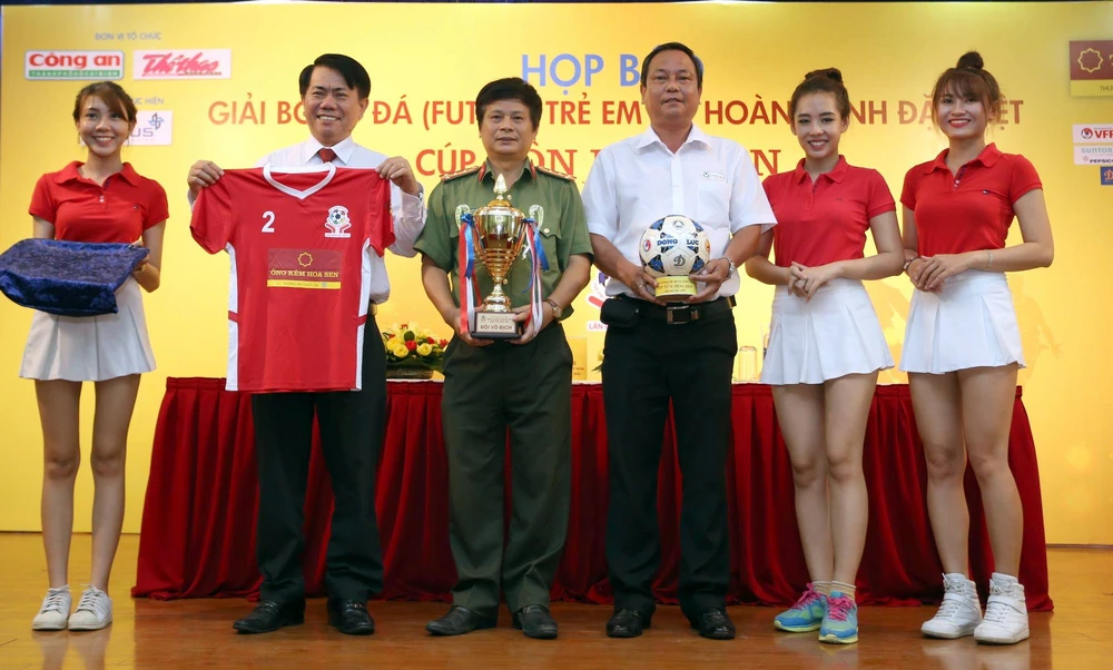 Giới thiệu áo đấu, cúp và bóng thi đấu. Ảnh: LÊ TUẤN