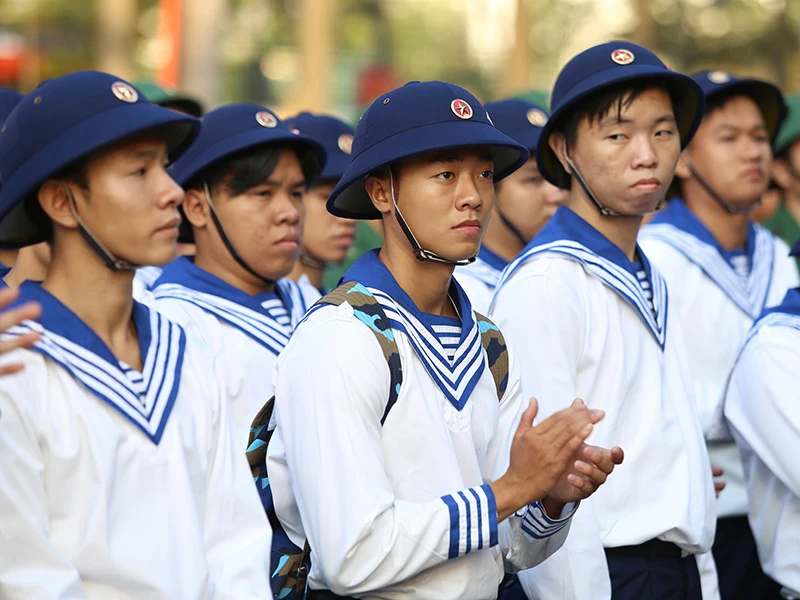 Các tân binh trong một đợt giao quân nghĩa vụ quân sự ở TP.HCM.