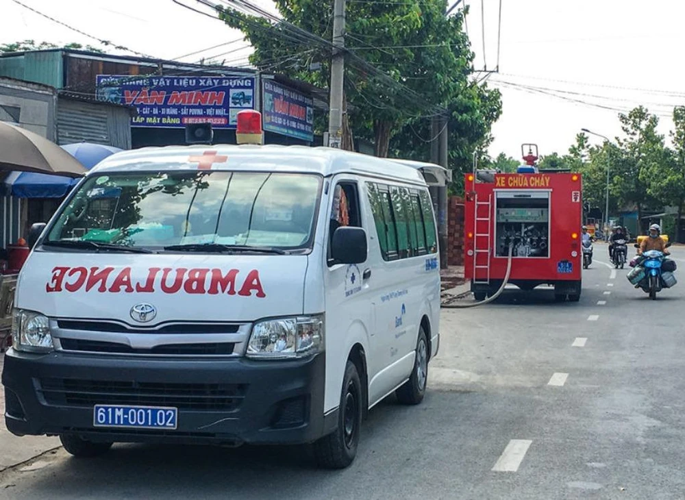 Xe cứu thương và PCCC được huy động đến hiện trường.