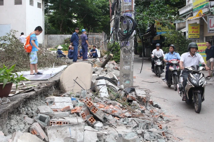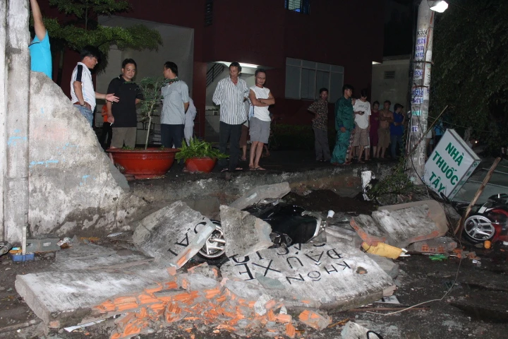 Hơn 30 mét tường bao chung cư An Lộc (đường số 5, KP.7, P.17, Q.Gò Vấp) bị sập đổ vì mưa lớn tối qua. Các xe máy bị đè bẹp dưới đống đổ nát. Trường hợp cháu Lê Nam Anh (9 tuổi) nặng hơn. Cháu bị đứt gân chân. Nguyên nhân được xác định, Nam Anh cùng em trai được mẹ là chị Lê Thị Hiên chở ngang qua khu vực chung cư An Lộc bất ngờ gặp sự cố. Không may, một tấm kính lớn dựng ở tường bao bị vỡ. Mảnh vỡ của kính đã cắt đứt gân chân của cháu. Hiện tại, Nam Anh đang nằm tại khu ngoại chấn thương bệnh viện 175 trong tình trạng sức khỏe rất yếu. Cháu liên tục kêu đau và mất ngủ cả đêm vì không thể trở mình được. Ngoài ra, 7 chiếc xe máy và 1 xe đạp bị đè bẹp trong sự cố này đã được đưa về trụ sở công an phường 17 (Q.Gò Vấp) để lập biên bản xử lí.