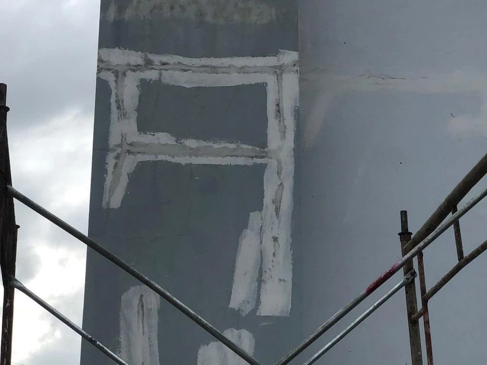 Các vết nứt đang được khắc phục. Ảnh: TRẦN VŨ