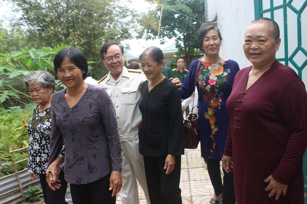 Bà Tánh với những người từng tải thương cùng ông Môn vui mừng khi gặp lại. Ảnh: HL