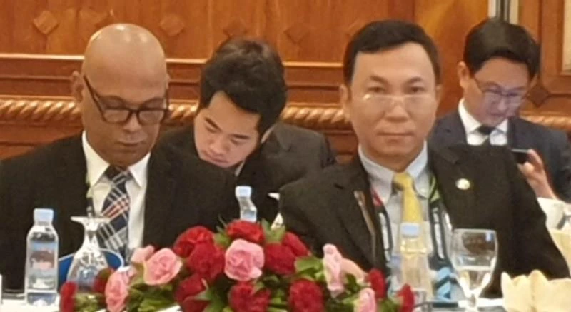 Phó chủ tịch VFF Trần Quốc Tuấn (phải) dự đại hội AFF
