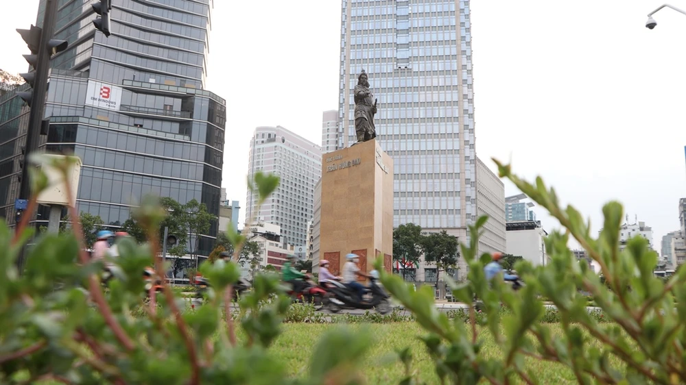 Bức tượng uy nghi, oai dũng nổi bật giữa trung tâm và là hình ảnh quen thuộc của người dân TP.HCM.