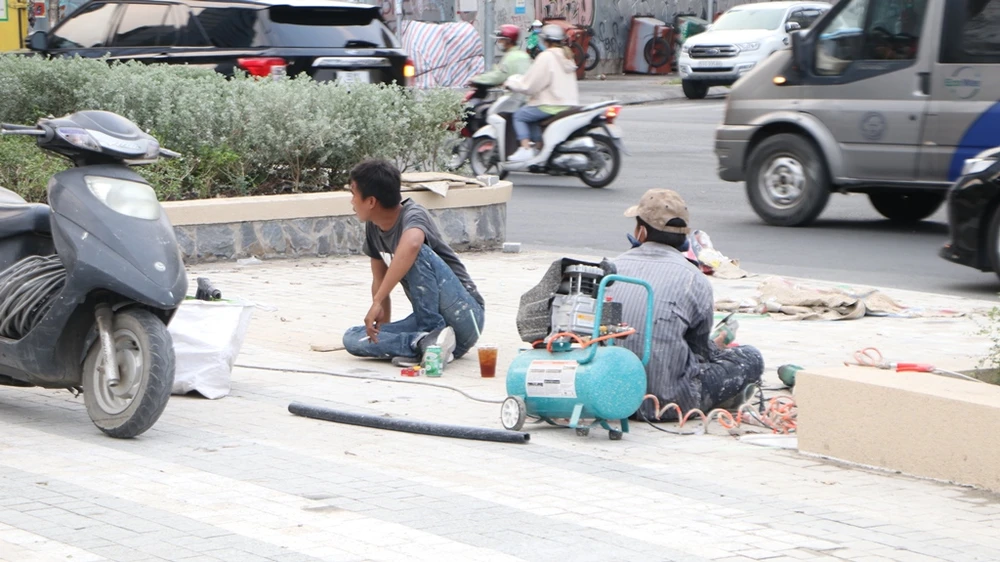 Công nhân tranh thủ nghỉ mệt vào những ngày làm việc cuối.