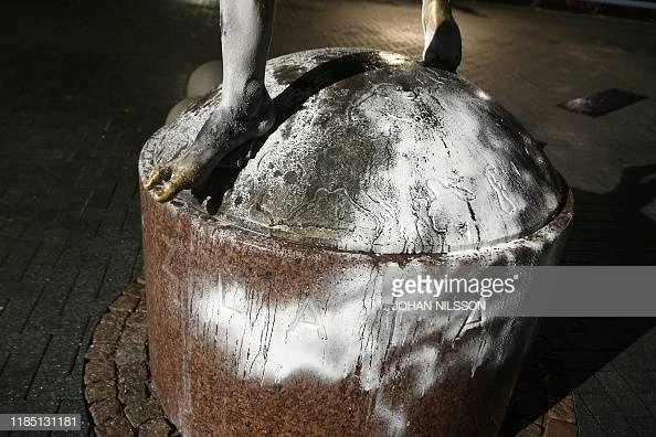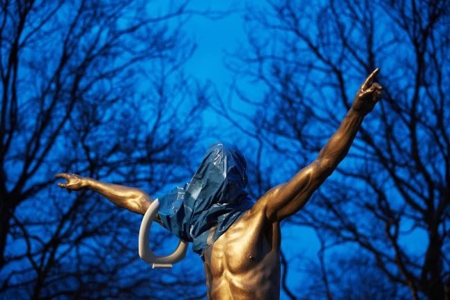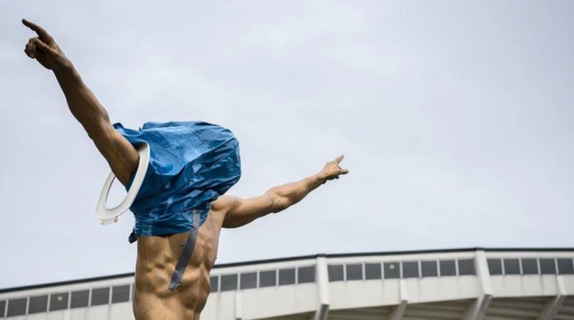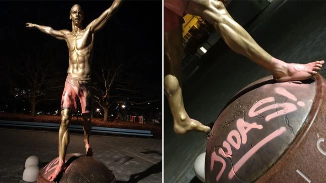 Tượng của Ibra bị bôi bẩn.