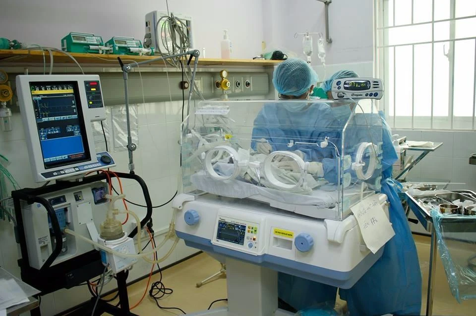 Ngay lập tức bé được chuyển qua Đơn vị Hồi sức nhi để kiểm tra tình trạng sức khỏe. Nhận định đây là trường hợp sinh non, bé bị suy hô hấp nặng, nếu không xử lý kịp thời có thể dẫn đến tử vong. Các bác sĩ đã tiến hành cho bé thở áp lực dương qua mũi với thông số cao, đồng thời đặt nội khí quản và bơm ba lọ thuốc trưởng thành phổi curosurf, đặt nằm lồng ấp để duy trì ổn định thân nhiệt... Sau hơn một giờ nỗ lực xử trí, tình trạng nguy hiểm của bé đã qua đi và dần ổn định, dự kiến sẽ cai máy thở trong vòng 24 giờ.