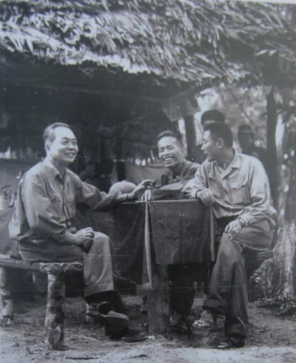 Đại tướng Võ Nguyên Giáp cùng Tư lệnh Binh đoàn Trường Sơn Đồng Sỹ Nguyên đến thăm bộ đội Trường Sơn. Ảnh tư liệu