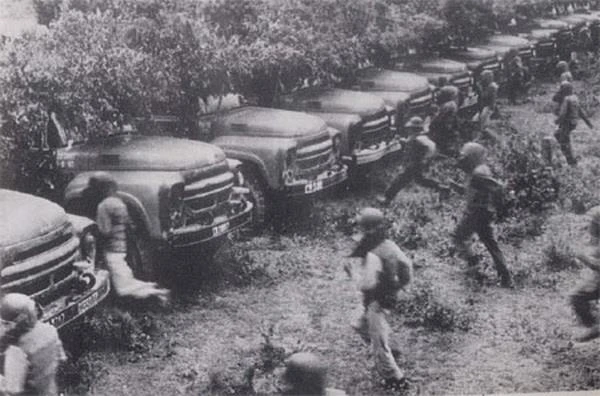 Đội hình xe ô tô của Trung đoàn 13 (Binh đoàn Trường Sơn) chuẩn bị lên đường thực hiện chiến dịch vận tải. Ảnh tư liệu
