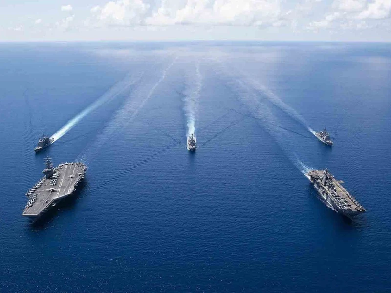 Nhóm tác chiến tàu sân bay USS Ronald Reagan của hải quân Mỹ di chuyển ở Biển Đông vào tháng 10-2019. Ảnh: AFP