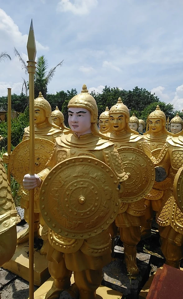 Thời điểm này, ông Dũng cho đúc khoảng 240 tượng lính với ý tưởng một người lính giữ thành với đầy đủ áo giáp, nón mũ và khiên chống tên.