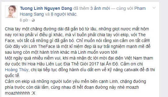 Trên Facebook cá nhân của mình, Tường Linh cũng xác nhận thông tin cô đại diện Việt Nam tham dự cuộc thi Hoa hậu Liên lục địa - Miss Intercontinental 2017.