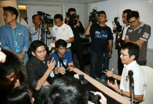 Chủ tịch CLB Si Sa ket, ông Thanet trả lời báo chí vì thuộc cấp bị bắt