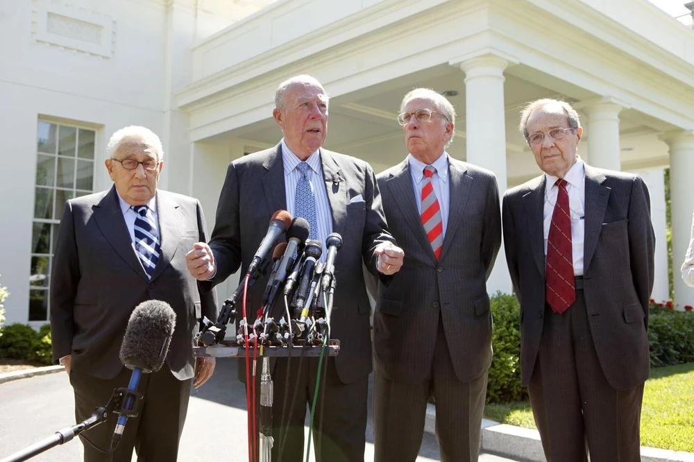 (Từ trái sang): Cựu Ngoại trưởng Mỹ Henry A. Kissinger, cựu Ngoại trưởng Mỹ George Schultz, cựu nghị sĩ Dân chủ Mỹ Sam Nunn và cựu Bộ trưởng Quốc phòng Mỹ William Perry cùng thành lập Dự án An ninh Hạt nhân năm 2016 nhằm giảm nguy hiểm và đe dọa từ vũ khí hạt nhân. Ảnh: NTI