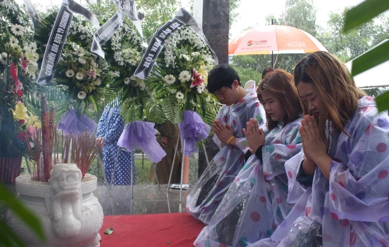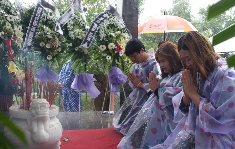 Đại diện Hội Nhà văn đảo JEJU (Hàn Quốc) gửi tràng hoa và thắp hương tưởng niệm vụ thảm sát Bình Hòa.