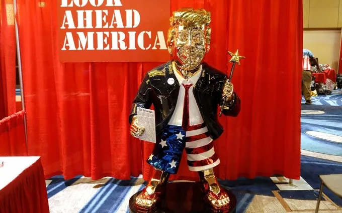 Tượng vàng tạc Cựu Tổng thống Trump được trưng bày tại Hội nghị hành động chính trị bảo thủ (CPAC) của đảng Cộng Hòa. Ảnh: AP