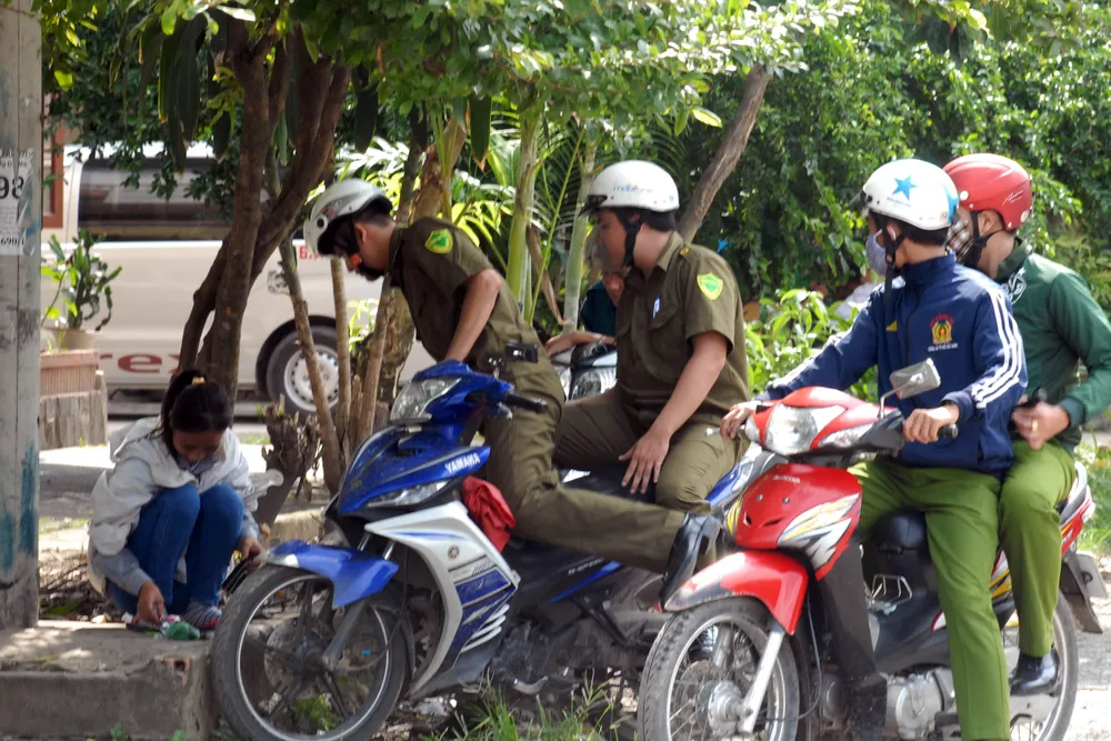 Công an xã Bà Điểm, Hóc Môn tuần tra khu vực An Sương phát hiện người nghiện mời về trụ sở chụp ngày 29-10. Ảnh: Xuân Ngọc