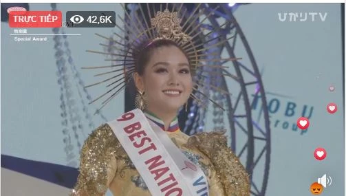 Tường San đã đoạt giải phụ Trang phục truyền thống đẹp nhất Hoa hậu Quốc tế (Miss International 2019) đang diễn ra tại Nhật Bản.