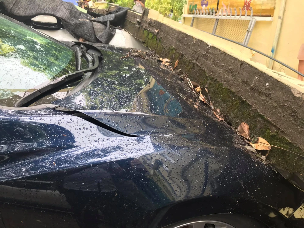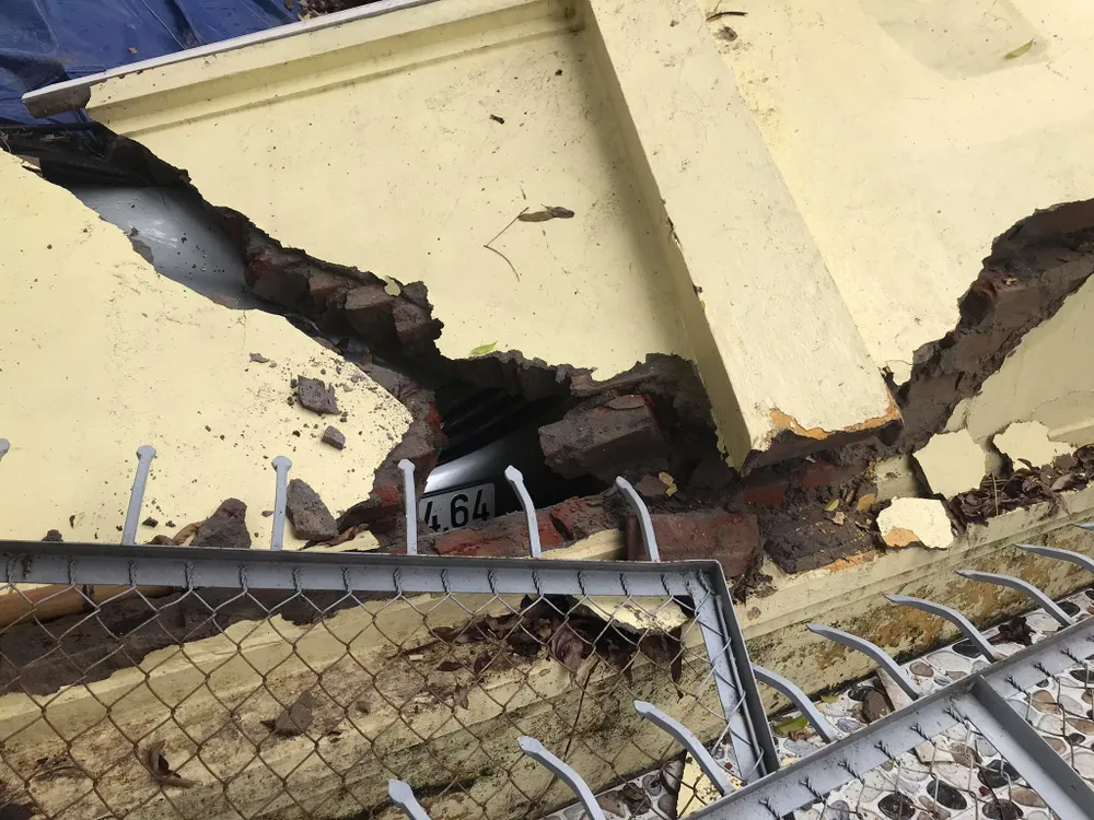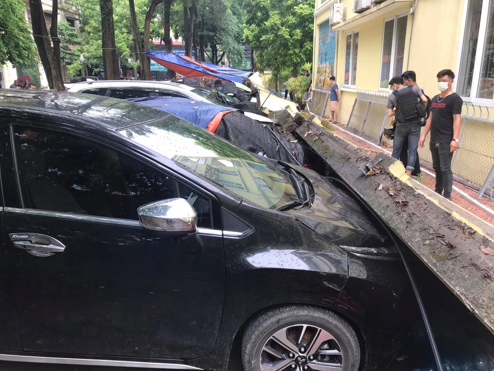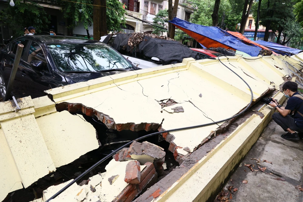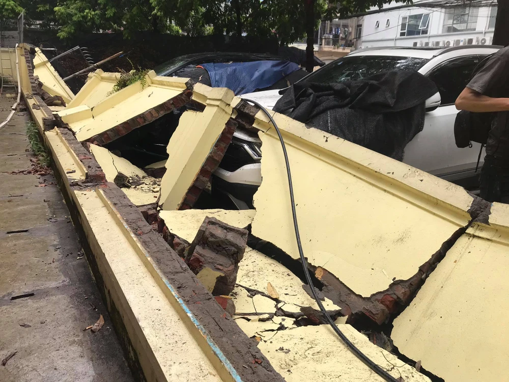Thời điểm trên, một bức tường cao khoảng 2 m, dài khoảng 30 m bất ngờ đổ sập, đè lên hơn 12 ô tô đang đậu trên vỉa hè.