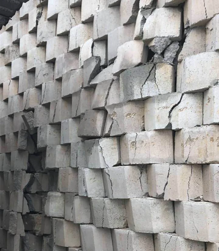 Nhiều vị trí tường thành bị vỡ, rơi ra ngoài.