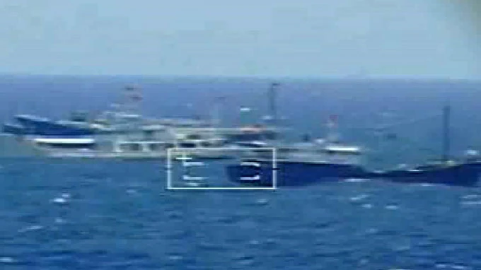 Hình ảnh tàu cá Việt Nam kiên cường trước sự ngăn cản, bao vây của các tàu cá vỏ sắt Trung Quốc - Ảnh: Bộ tư lệnh Cảnh sát biển Việt Nam