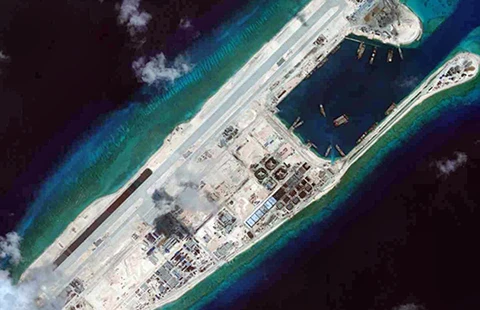 Trung Quốc đã xây dựng trái phép đường băng trên đá Chữ Thập. Ảnh: CSIS/AMTI